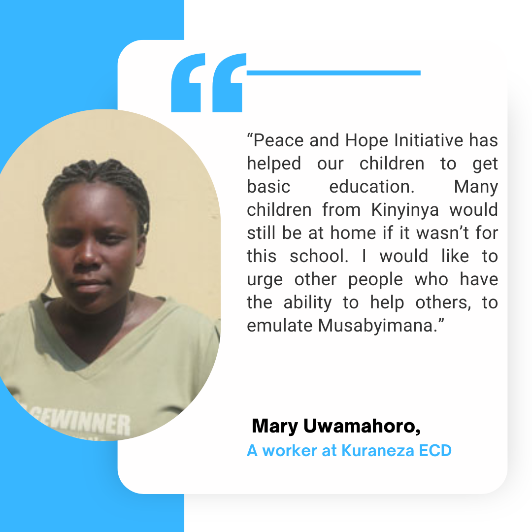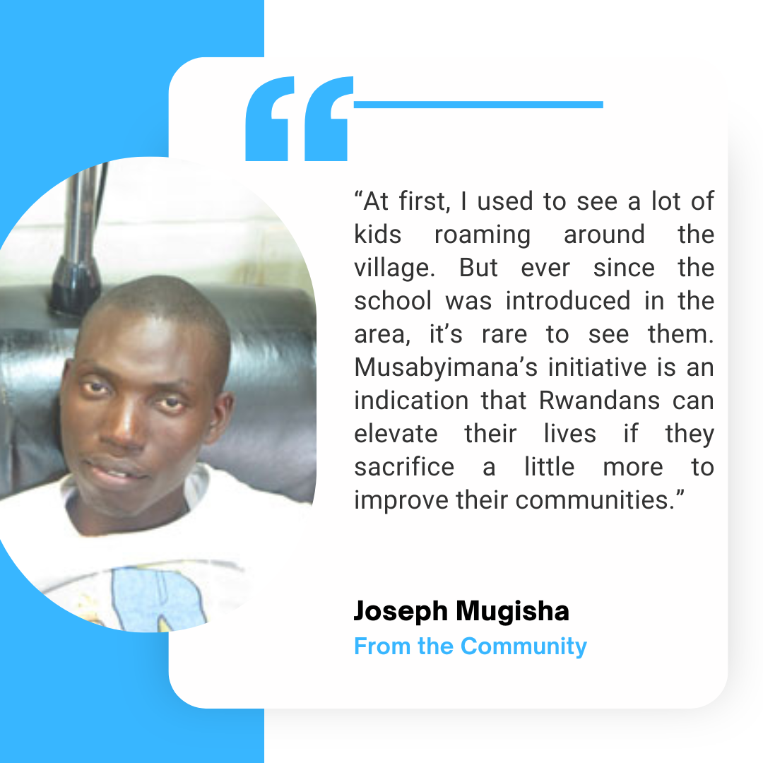 “I felt the need to take action to assist the community in breaking free from the cycle of poverty that has trapped them since the 1950s when our parents were denied access to education due to genocide ideology. I began with 78 children selected from child-headed households. As of January 2023, we had 350 children in our program, with over 200 more on a waiting list due to a shortage of classrooms. I would like to invite you to partner with us.”