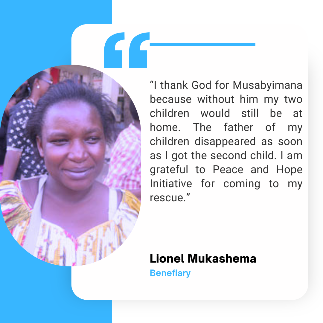 The Peace and Hope Initiative is a Rwandan NGO formed in 2012 and established by the heads of child headed families who were forced to play a parental role for their younger siblings after the 1994 Genocide against the Tutsi in Rwanda. The organisation aims to ensure that poor and vulnerable children irrespective their background have access to basic needs including equal access to proper education, good nutrition and health care. Peace and Hope Initiative also strive to build a better and cohesive society through community projects that target vulnerable groups such as persons with disabilities, vulnerable women and young people.